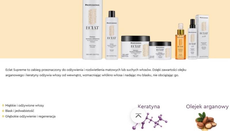 Zabieg uwalniający całą siłę i naturalny blask olejku arganowego i keratyny : Eclat Supreme to drogocenny rytuał pielęgnacyjny o wielorakim działaniu odżywczym i regenerującym .
